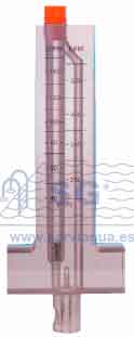 aparato, a la propia tubería. Fabricado en una sola pieza de metacrilato transparente, el flotador de lectura es de AISI 316.