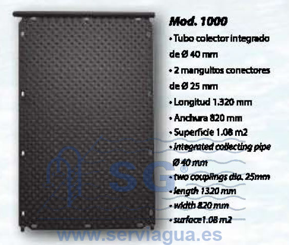 - Reducida pérdida de presión Aprox. 0,003 bares a 200 l/h/m2.