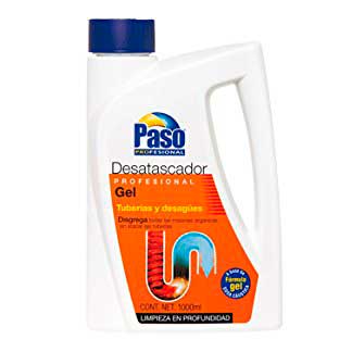 Desatascador profesional para tubería y bajantes. Su fórmula gel asegura la eficacia y seguridad de la aplicación. No daña las tuberías ni elementos aguas abajo.