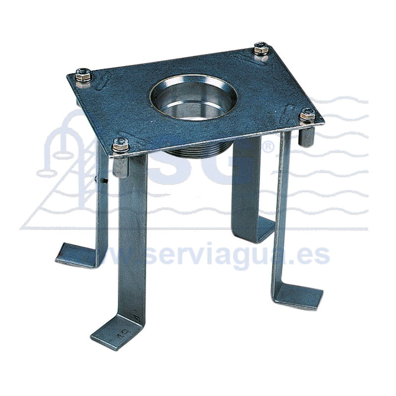 Fabricado en acero inoxidable AISI-316. Compuesto por la base empotrable en el suelo, tornillos, arandelas y toma de tierra. Conexión inferior 21/2”.