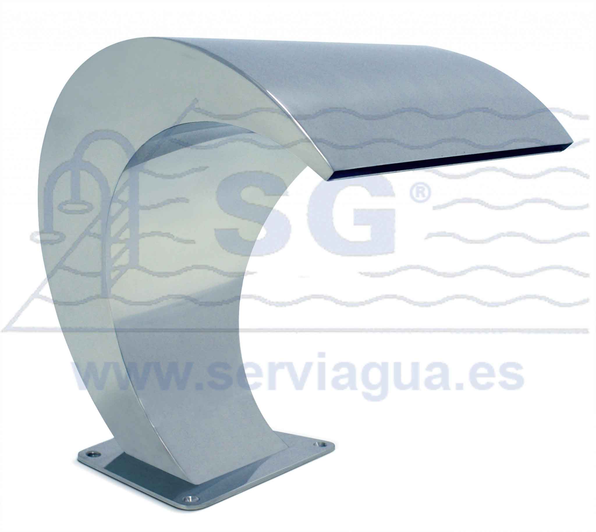 Cascada residencial en acero inoxidable pulido. Sujección en el suelo con tornillos y tacos de anclaje.