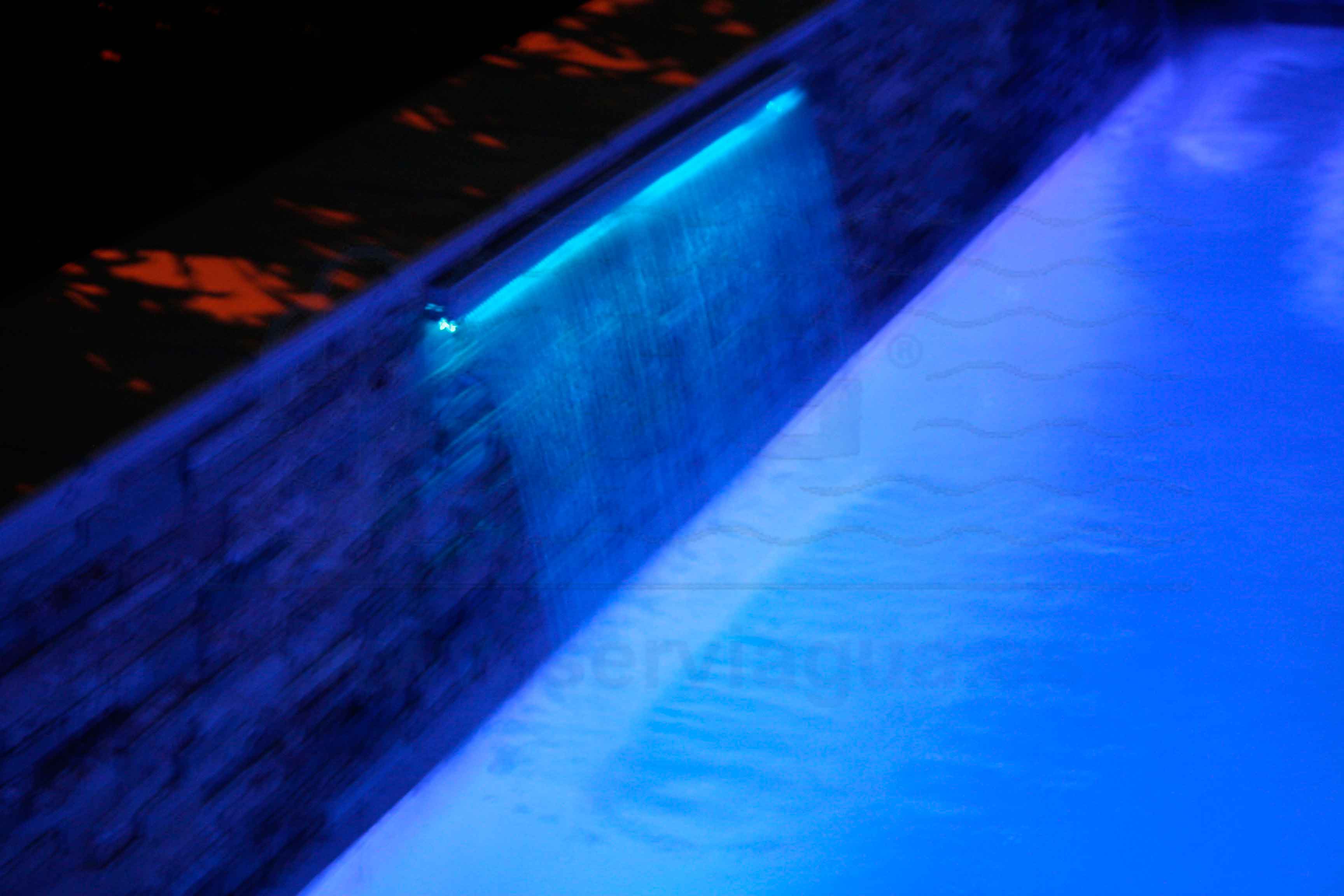 Kit de iluminación para cascadas Smart acrílicas de labio corto. a través de leds. El kit está compuesto por tira de leds adaptada al ancho de la cascada, adaptador a corriente (transformador) y mando para los modelos RGB (color).