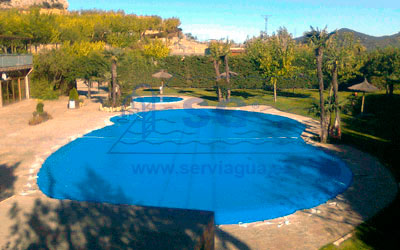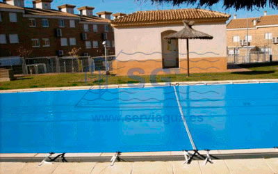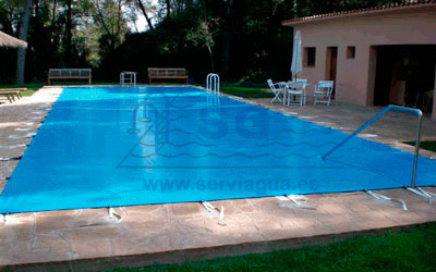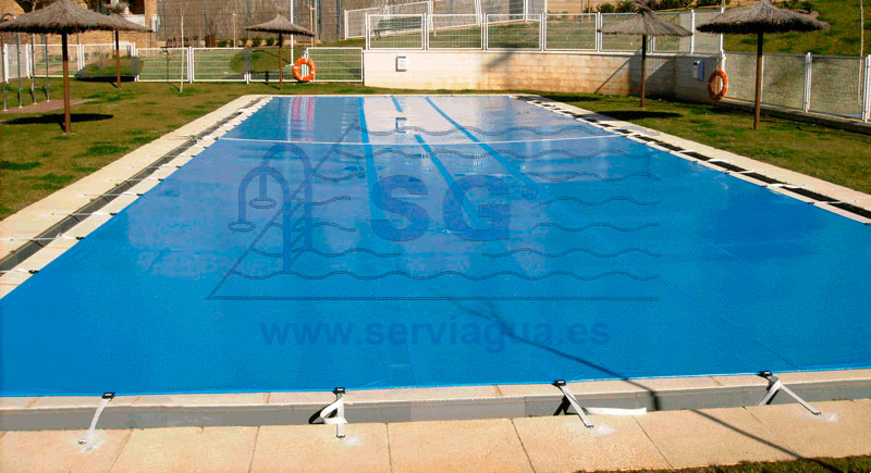 El cobertor de gran resistencia para invernaje. Es posible cubrir piscinas de hasta 15m. de ancho y un largo indefinido.