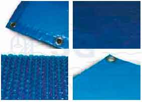• Cubiertas de gran resistencia para invernar la piscina, de color azul negro o azul beige, formado por tejido de PVC