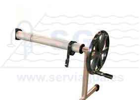 Enrolladores y soportes para cubiertas térmicas de burbujas. Para completar el enrollador es necesario sumar el tubo con el ancho deseado y el soporte que se prefiera.