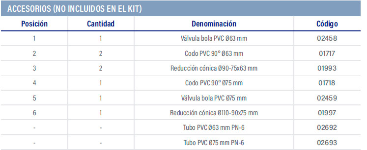 Compuesto de: conjunto boquilla, caja de alojamiento de plástico, armario de maniobra y bomba 3,3 Kw (4,5CV) 400 V III 50 Hz.