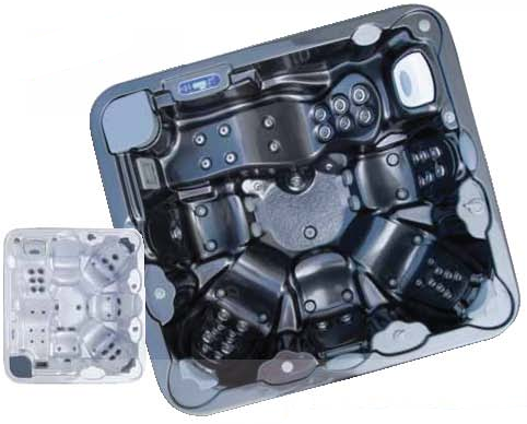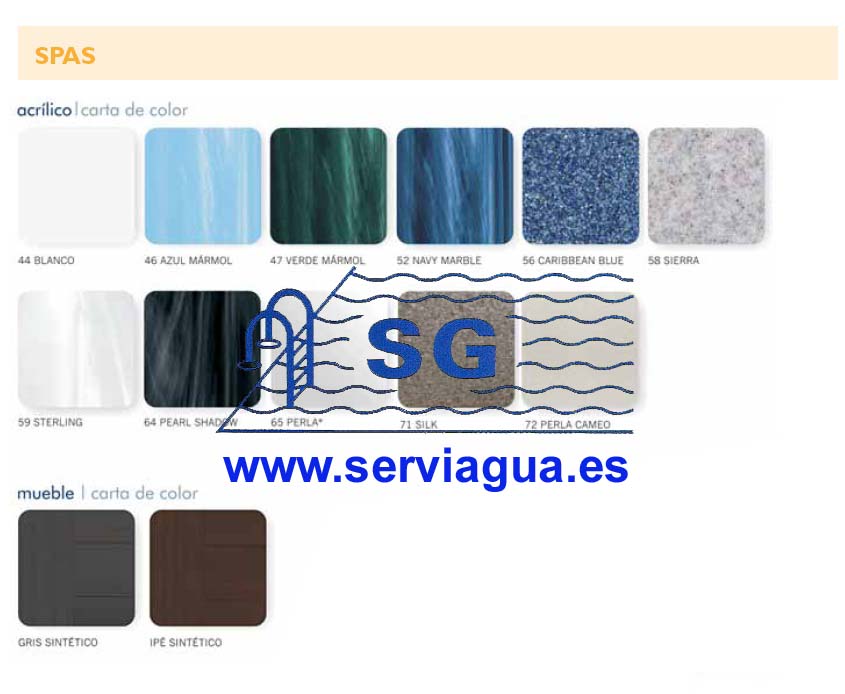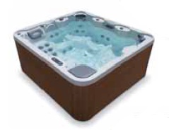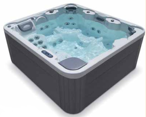Totalmente equipado con un mueble sintético para exterior, 3 reposacabezas, 21 jets de masaje, 1 cascada, 16 boquillas soplantes, bomba de masaje de 2 CV High Flow, 2 controladores de aire, válvula de distribución de aire, 1 skimmer, filtro de cartucho plisado.