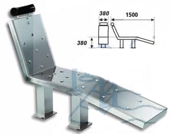 Fabricada en acero inoxidable AISI 316L satinado. Anclaje incluido con tubo de diámetro 32 para su conexión. El anclaje ha de ir a ras de suelo y la cama se fija con tuercas ciegas M8 en A2.