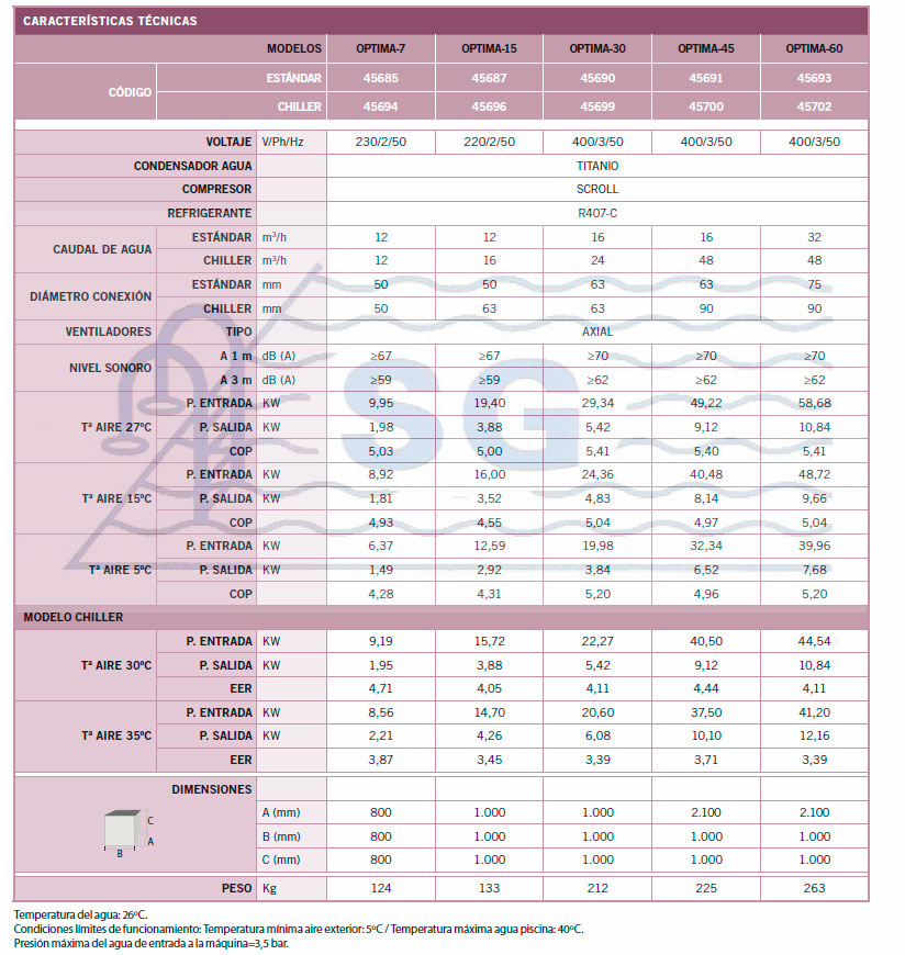 • CHILLER: Dando calor o frío para mantener la temperatura de la piscina, con desescarche por inversión de