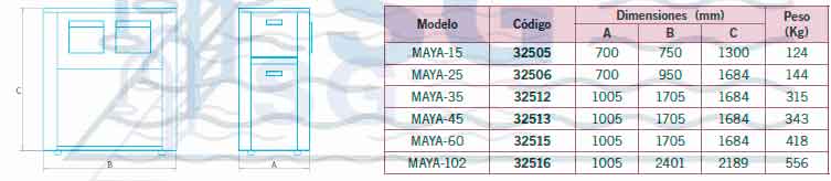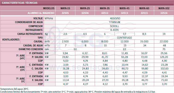 Bomba de calor Maya aire-agua con ventilador centrífugo de instalación en el interior