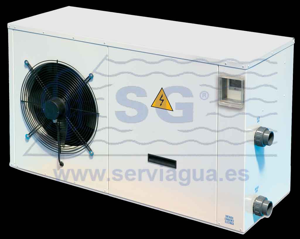 • Evaporadora en titanio con envolvente en PVC y serpentín en titanio G2 según norma SASTM B. Carcasa en Aluminio al magnesio anticorrosión. Gas tipo R407C de bajo impacto ecológico.