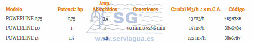 Potencias disponibles: 0.75 cv, 1 cv y 1.5 cv en monofásico