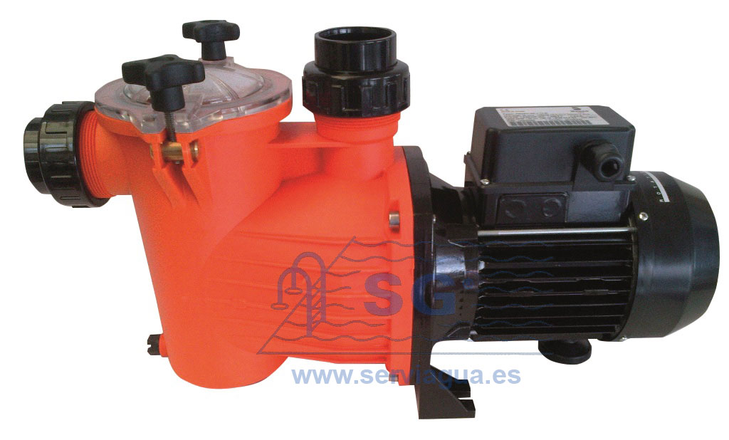 Electrobomba autoaspirante para piscinas con prefiltro con tapa transparente de pomos.