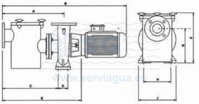 Aplicaciones: Bomba centrífuga de gran caudal, a las que se les ha incorporado un prefiltro en la aspiración, lo cual hace de ellas la bomba ideal para grande equipos de filtración.