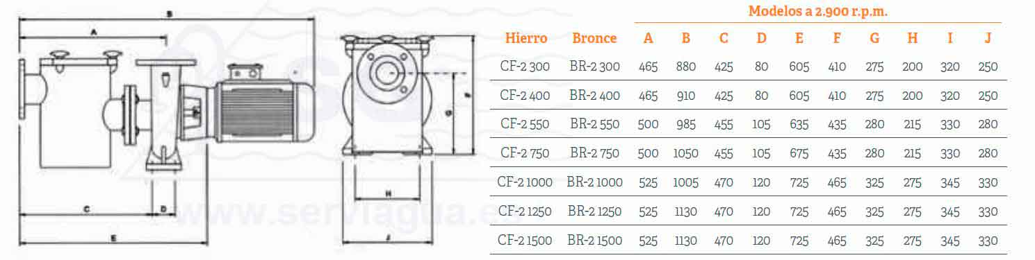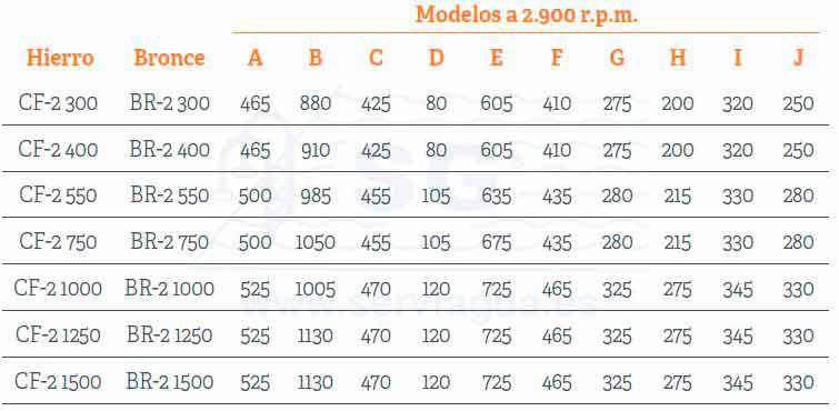 Bomba centrífuga 2.850 r.p.m en hierro 3 HP CF-2 300