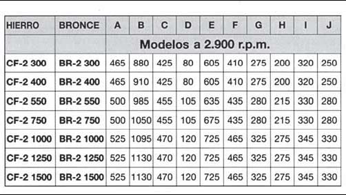 - Versión fundición de hierro: Cuerpo bomba, soporte, prefiltro, acoplamiento y turbina en fundición de hierro. Eje y cesto prefiltro en acero inoxidable. Cierre mecánico en carbón-cerámica.