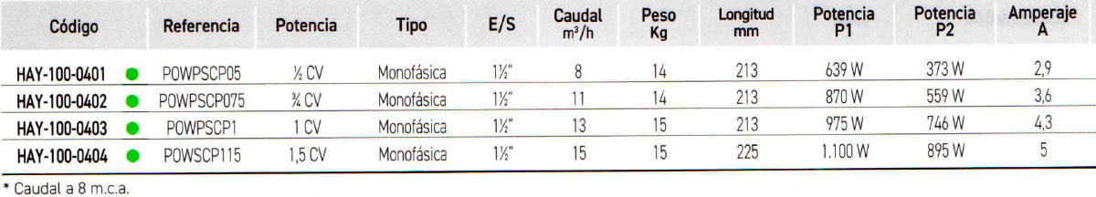 Bomba autoaspirante con motor cerrado y ventilado (IPX5).
