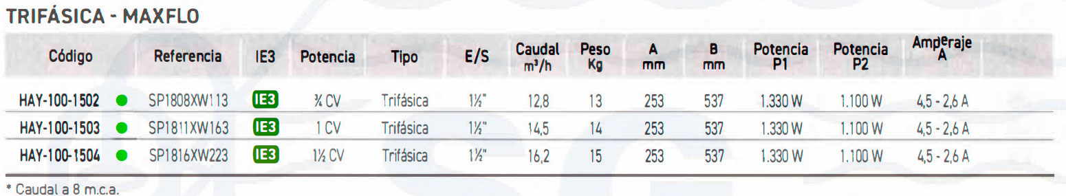 La gama de bombas para piscina Max Flo de Hayward combina un resultado tecnológico máximo vinculado con materiales inalterables debido a sus resistencias a la corrosión. Diseño compacto, ideal para locales técnicos reducidos. Excelente relación calidad precio. Entrada y salida de rosca de 1,5". Adaptada para todas las piscinas hasta 70m3 si es de 1,5CV y 90m3 si es de 2CV.