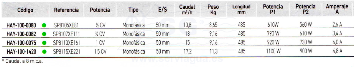 RANGO CAUDALES | 10.8 - 17.2 m3/h |
