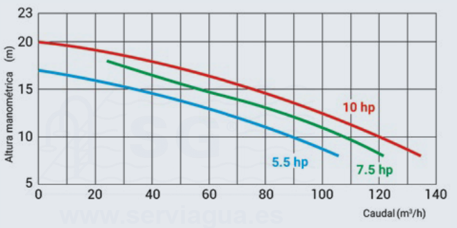 Motor 4 polos, funcionamiento a 1.450 rpm / 50 Hz.