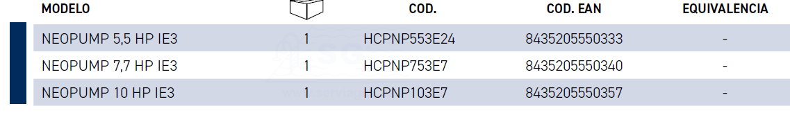 bomba HCP4200 10CV 1450RPM trifásica IE3 (400/700V)