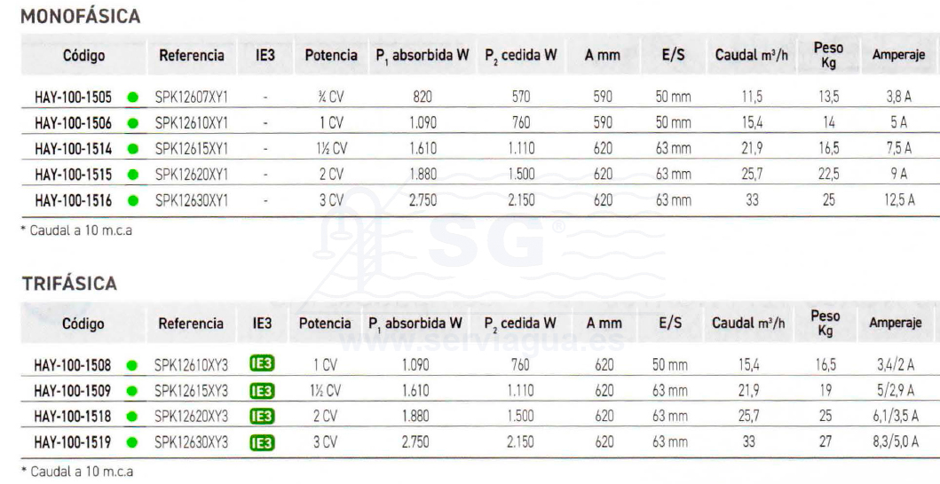 • Apta para uso con agua salada, sello mecánico en AISI 316