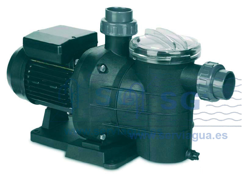 Electrobomba autoaspirante para piscinas, con prefiltro incorporado.