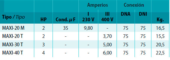- Bocas de aspiración e impulsión con racords de dos piezas de 2,5” convertibles con accesorios a 2”.