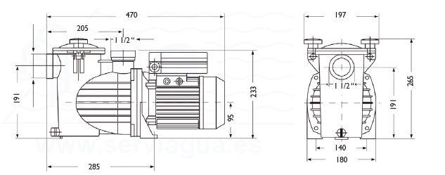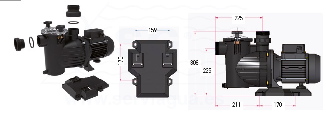 - La bomba permite dos tipos de conexiones: conexión rosca hembra 1½" y conexión para tubo de PVC Ø 50 para encolar.