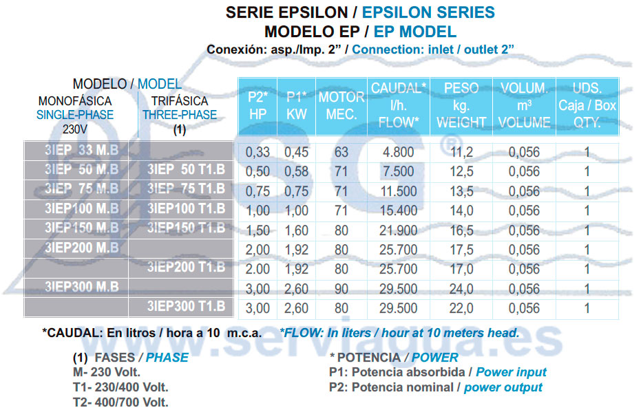 Conexión: asp./Imp. 2”ó 50/63 mm. / Connection: inlet / outlet 2” or 50/63 mm. modelo kSe