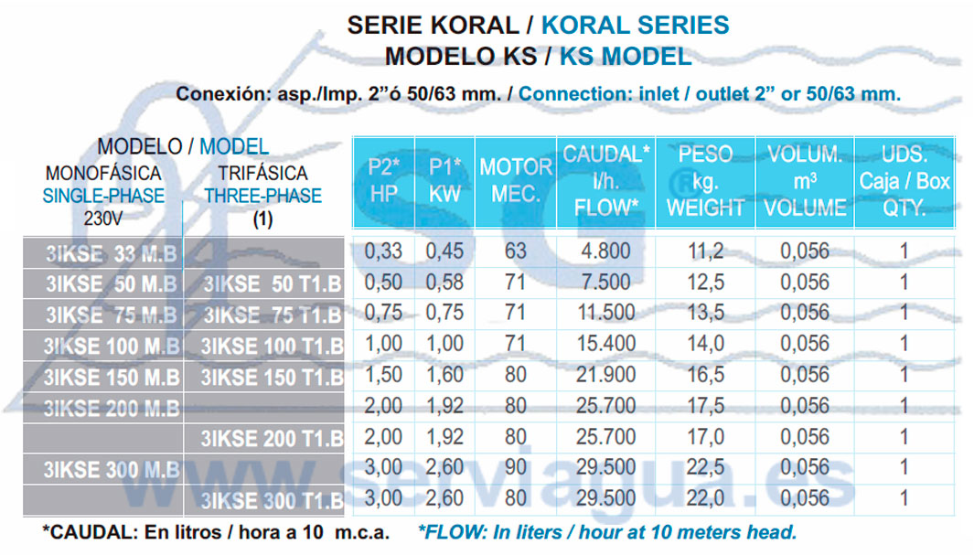 Conexión: asp./Imp. 2”ó 50/63 mm. / Connection: inlet / outlet 2” or 50/63 mm. modelo kSe