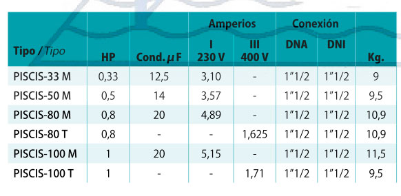 • Protección térmica: Incluidas en las bombas monofásicas.