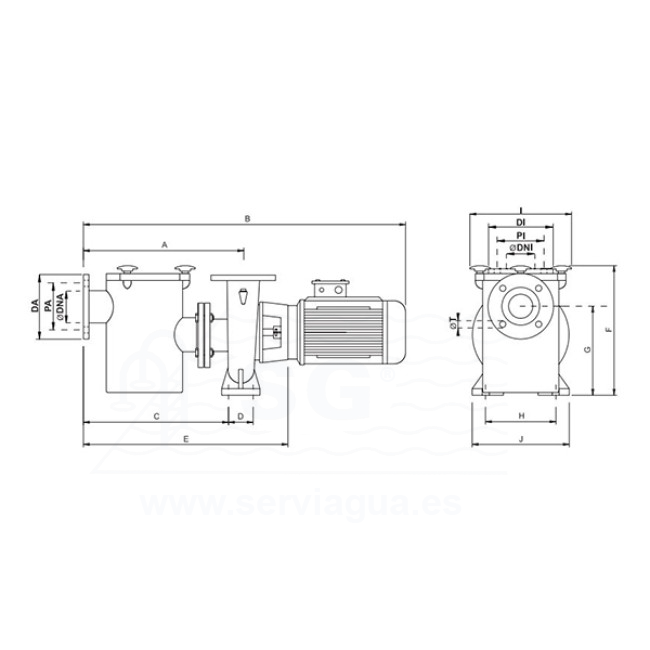 un motor con 2900 RPM que incorpora un prefiltro en la aspiración, lo cual hace de ellas la bomba ideal para grandes equipos de filtración. El cuerpo, soportes, acoplamientos y turbina están hechos de acero de alta calidad. Bombas monobloc que equipan un motor normalizado a través de un acoplamiento eje-bomba motor.