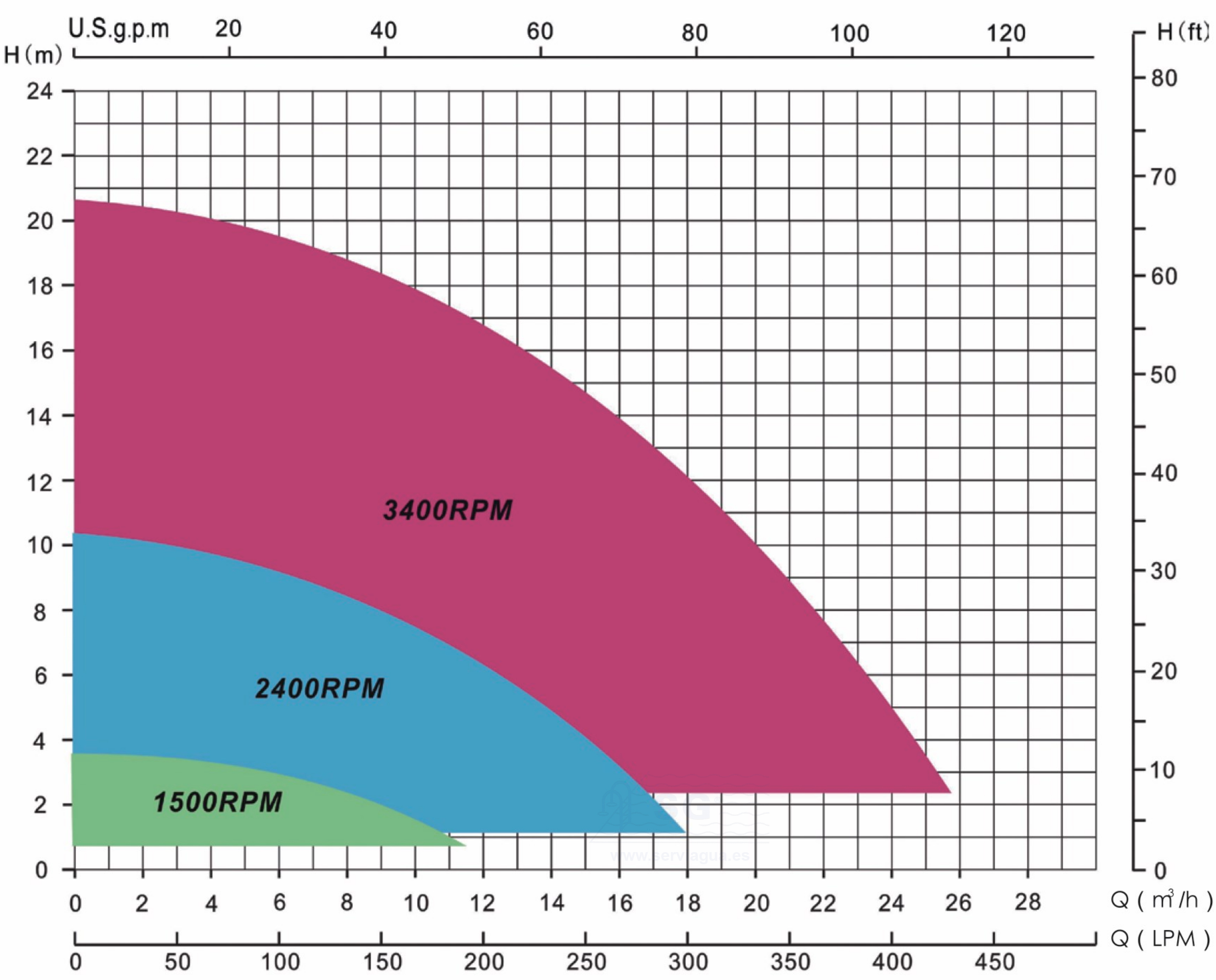 - Rango de funcionamiento: de 800 a 3.400 rpm.