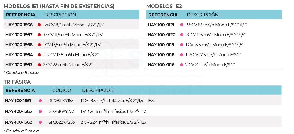 · Reducción roscada 2"-1,5" inlcuida en modelos hasta 1 CV.