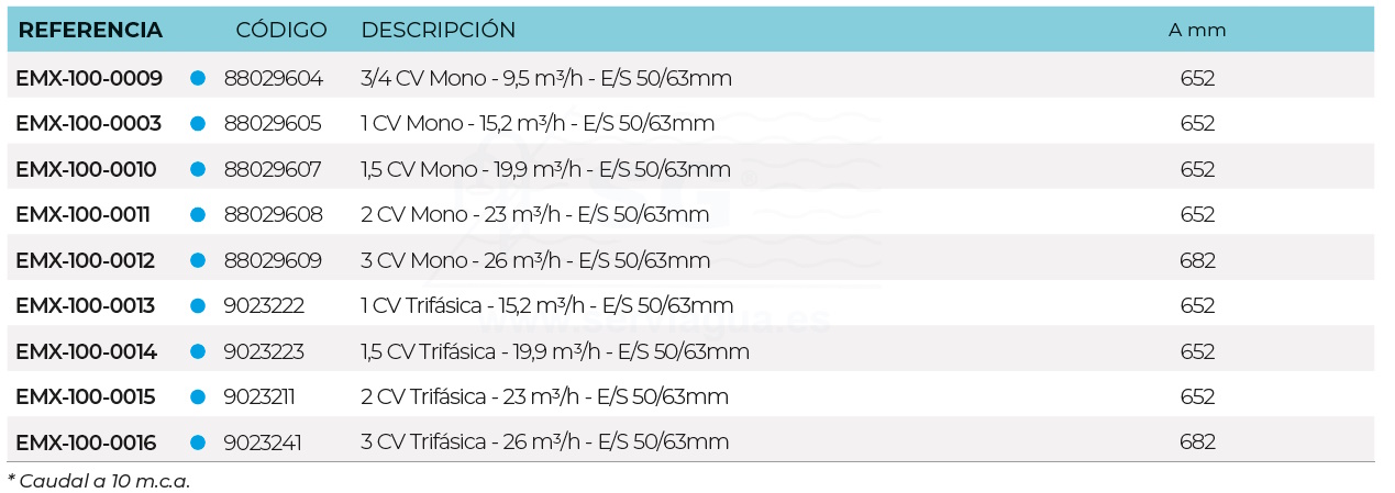 ▶ Autocebante hasta 3,3 m sobre el nivel del agua.