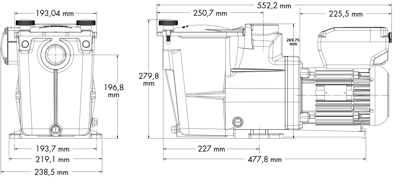 • Eje del motor y sello mecánico fabricado en acero inoxidable AISI 316 compatible con piscinas de agua salada.