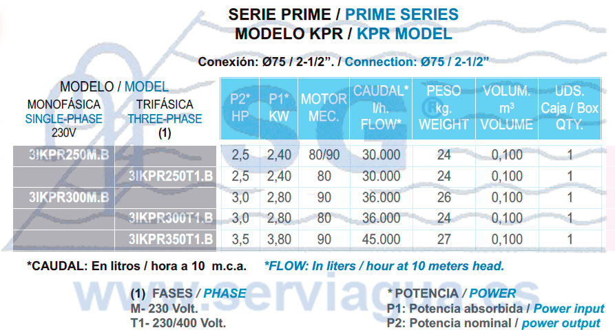 Bombas para piscinas privadas y residenciales serie PRIME modelo KPR300T1.B