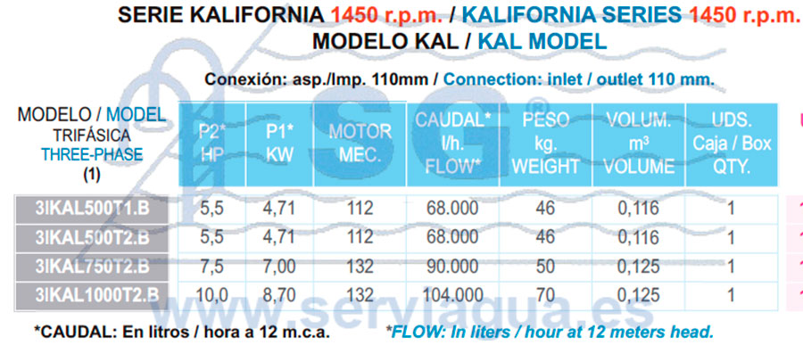 Bombas serie KALIFORNIA modelo KAL500T1.B
