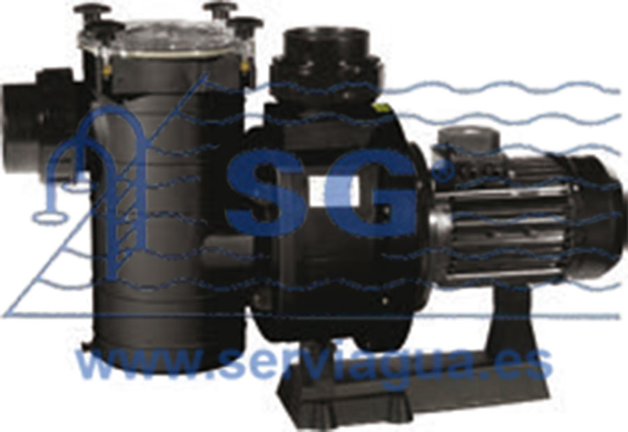 Bombas centrifugas autoaspirantes KRIPSOL para piscinas, serie KAN. Cuerpo de bomba inyectado en Noryl. Turbina en noryl con FV. Cestillo en material plástico inyectado color blanco. Prefiltro de gran capacidad (14 Litros) inyectado en termoplástico.Tapa de cuerpo en policarbonato transparente. La serie KAN, lleva el cierre de la tapa por medio de cuatro palomillas abatibles con espárragos en acero Inox. Cuerpo, tapa y bulón de palomilla reforzado para soportar presiones de trabajo de hasta 3 Kg/cm².