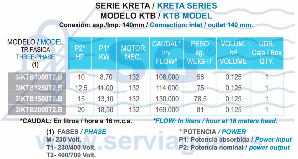 Bombas 15 HP serie KRETA modelo KTB 1500 T2.B