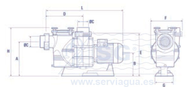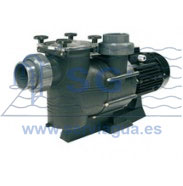 Electrobomba con prefiltro diseñado para permitir grandes caudales, con tapa transparente y cierre mediante palomillas, para facilitar el acceso al mismo. El cuerpo de la bomba y del prefiltro está fabricado en polipropileno reforzado con fibra de vidrio para una mayor resistencia y durabilidad. Las turbinas pueden ser de plástico o bronce según se indica. El eje de la bomba y el cesto del prefiltro fabricados en acero inoxidable. Motor protección IP-55 de 3.000 r.p.m. a 230/400V ó 400/680V (7.5, 10 y 12CV) y 50 Hz. Fabricadas desde 4CV hasta 12,5CV.