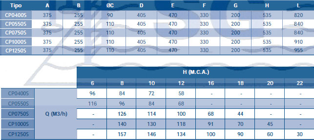 Consejos de uso: Se recomienda consultar las tablas de rendimientos para escoger la bomba que mejor se adapte al rendimiento de caudal requerido por las características de la instalación.