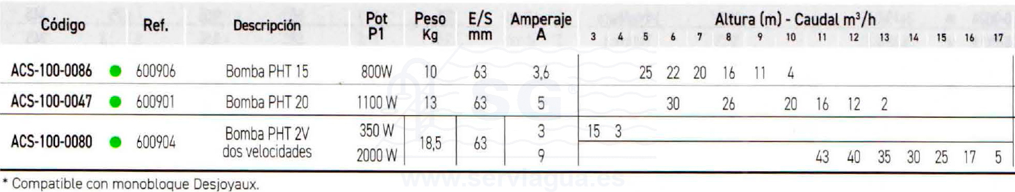 PHT - Bomba compatible monobloque Desjoyaux Bomba PHT 15