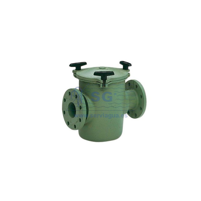 Prefiltro de fundición de hierro. Bridas taladradas s/Norma DIN-2501. Cesto en acero inoxidable AISI-304. Presión máxima de trabajo 2,5 bar.
