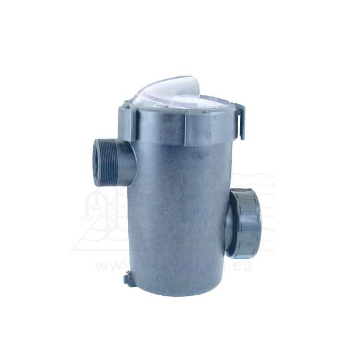 Elemento filtrante para acoplar a la bomba Astramax Cuerpo en material ABS + FV. Tapa de policarbonato transparente, cesto filtrante en material anticorrosivo. Boca de aspiración 2 1/4” GAS macho. Conexión a bomba 2 3/4” GAS hembra.
