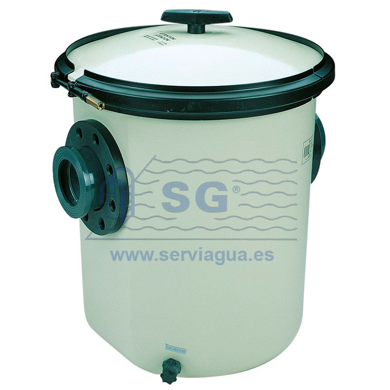 Bridas taladradas s/Norma DIN-2501. Cierre de tipo zuncho. Tapón de vaciado. Presión máxima de trabajo 1,5 bar.