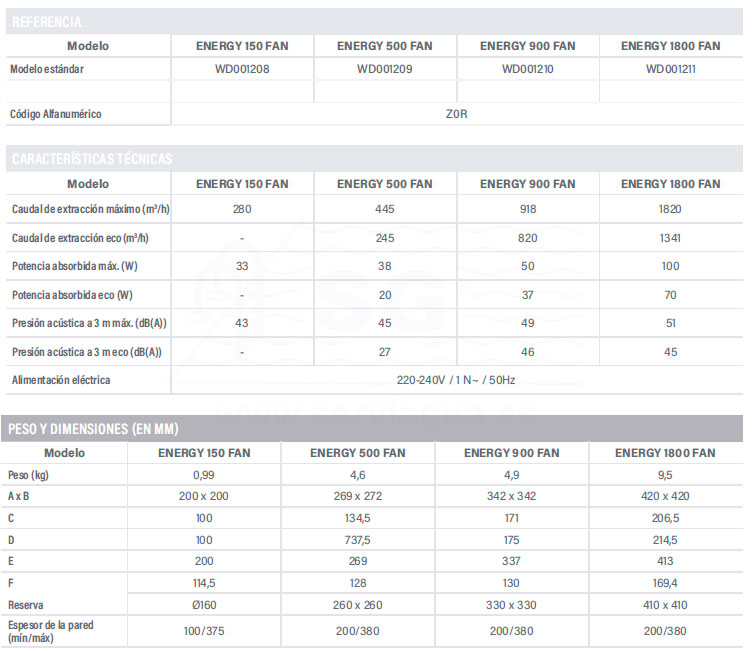• Turbina: reacción centrífuga, hélice ABS, montada directamente en el cuerpo del motor, bridas de polipropileno - protección IPX4