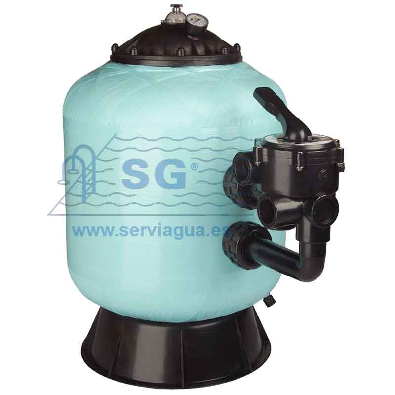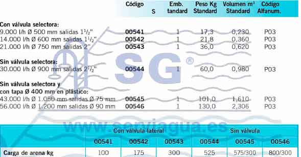 y válvula selectora lateral. Velocidad máx de filtración 50 m3/h/m2.