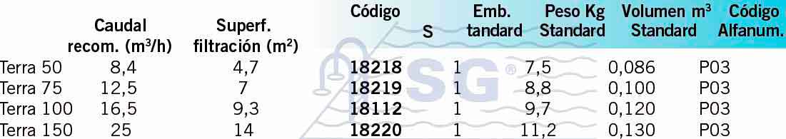 filtración Sencillez de mantenimiento. Salidas de 1½" para Terra 50 y 75, salidas de 2" para Terra 100 y 150